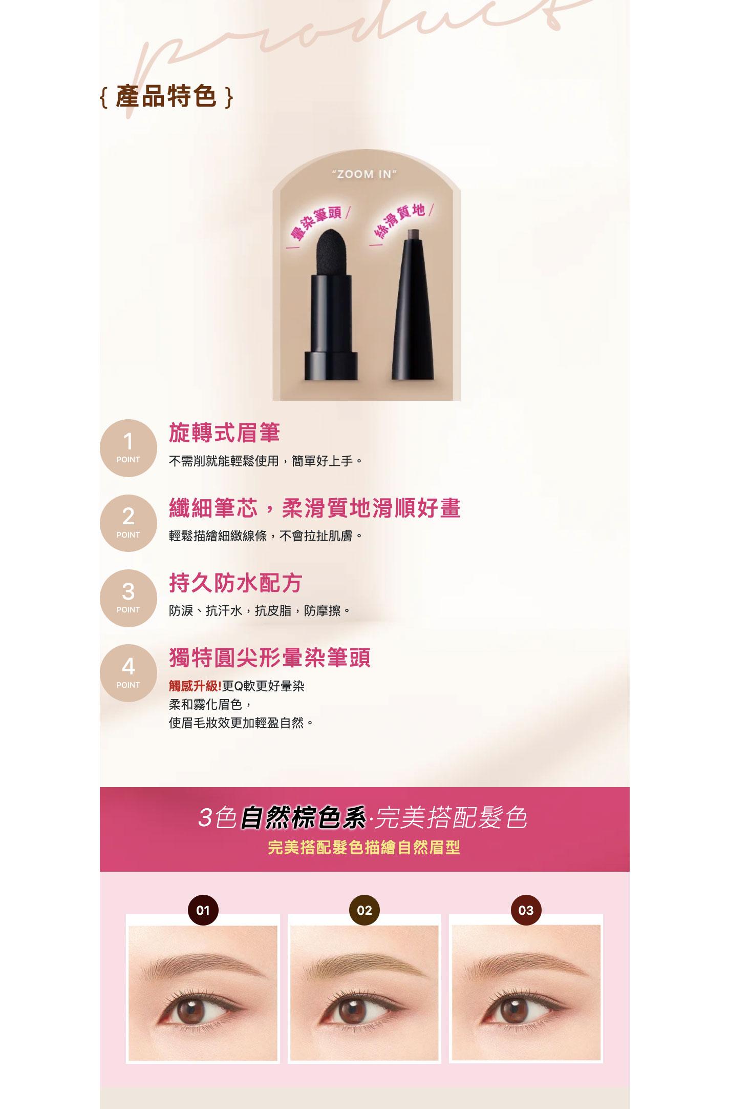 ♦ 旋轉式眉筆,簡單使用好上手