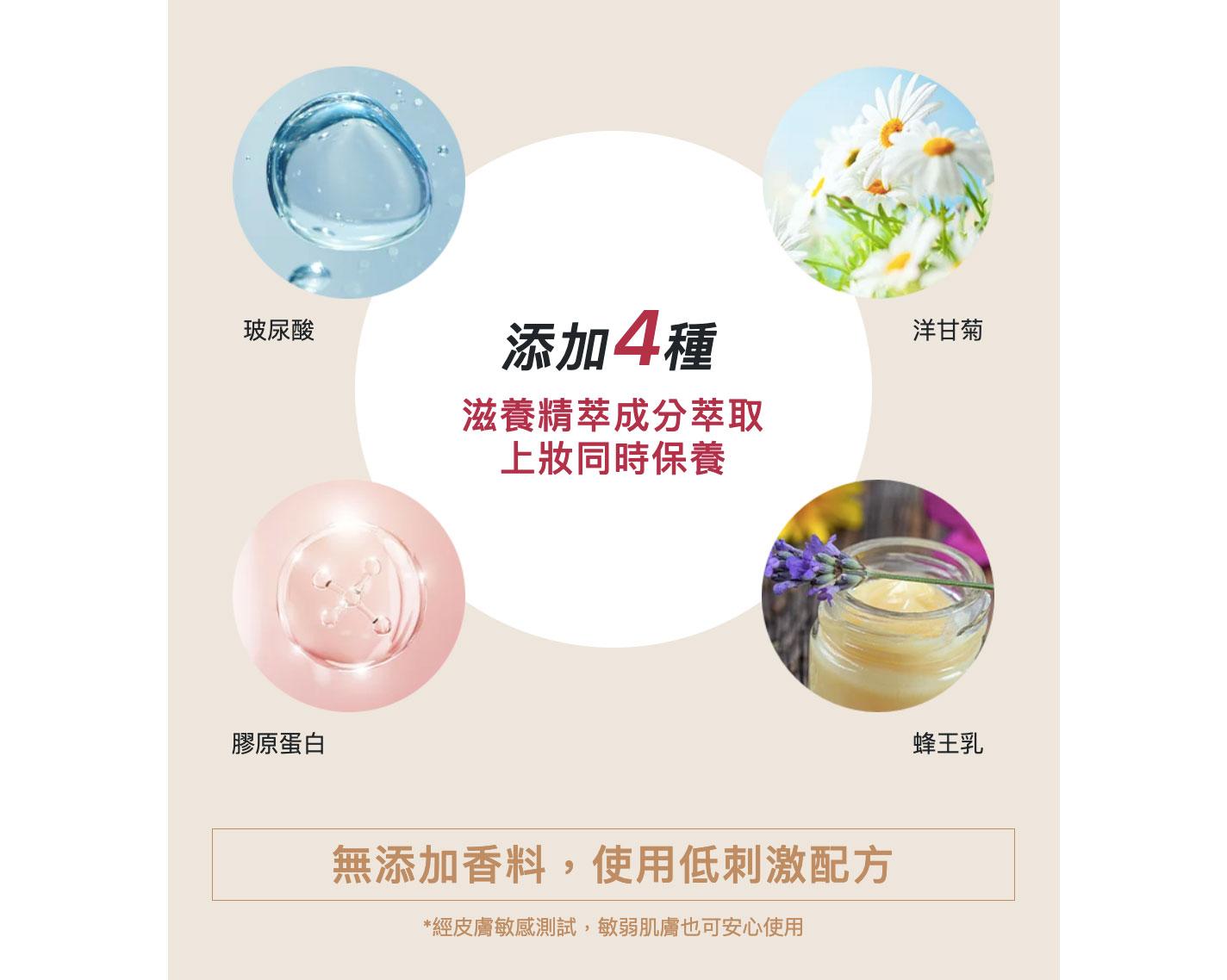 ♦ 上妝同時保養,添加多重滋養成分