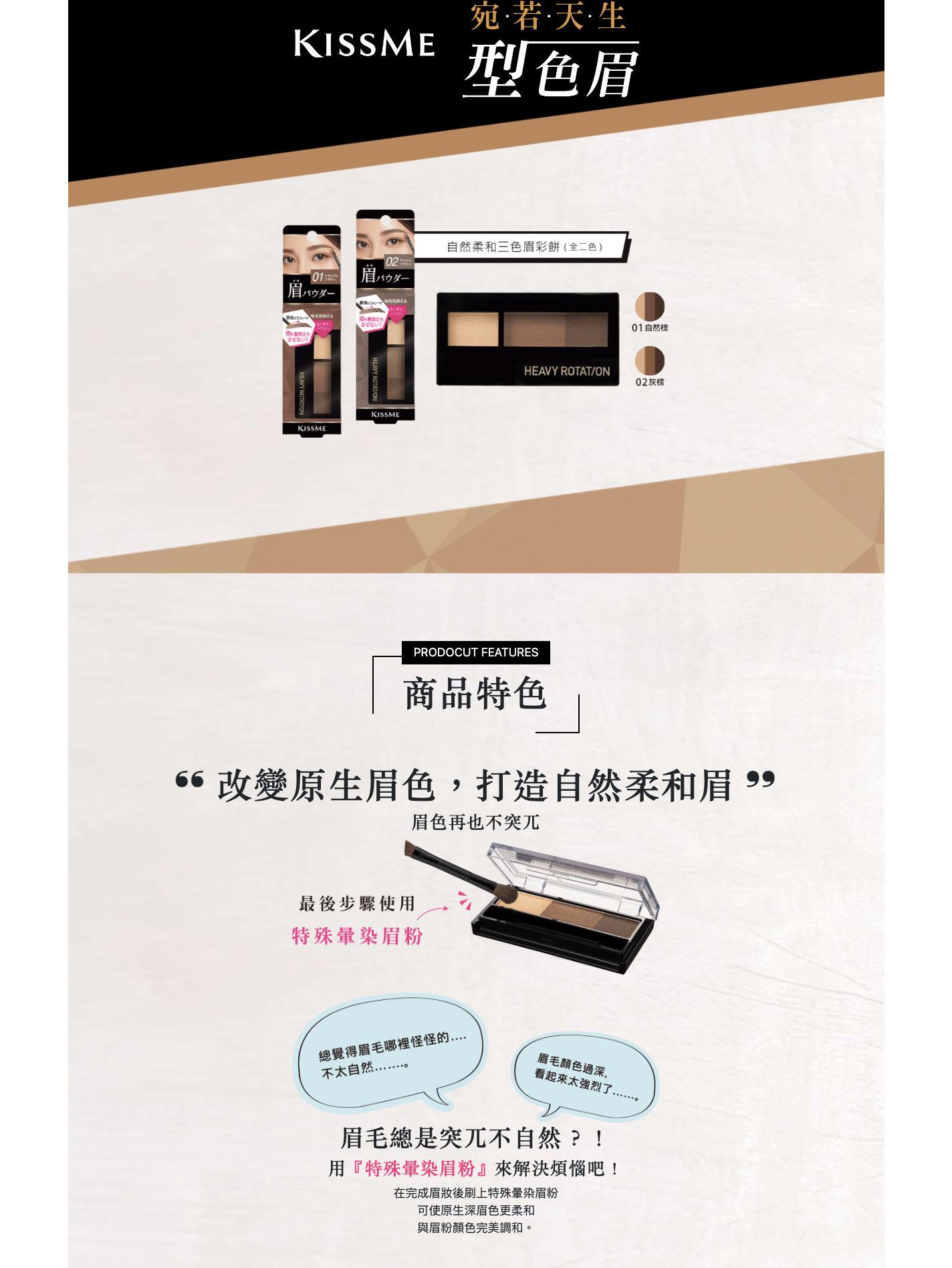 持久暈染眉粉 KISSME 自然柔和三色眉彩餅 (2色)